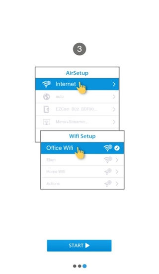 在本站完成安装后点击打开进入,选择第一个方框;随后我们同时开启投影仪推送宝,接着在手机上搜索投影仪发出的以ezc开头的无线信号。