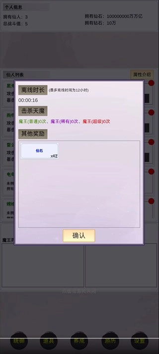 游戏内包含统御、道具、养成、游历、设置等丰富玩法供玩家探索,玩家可招募仙人,收集仙人碎片合成新仙人,更有多样定位可供选择。