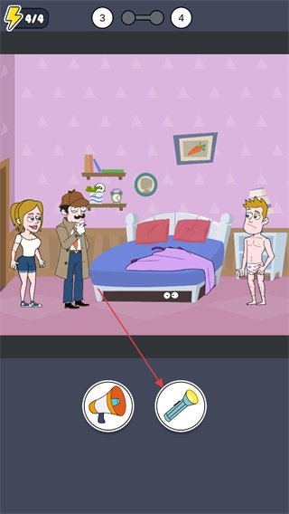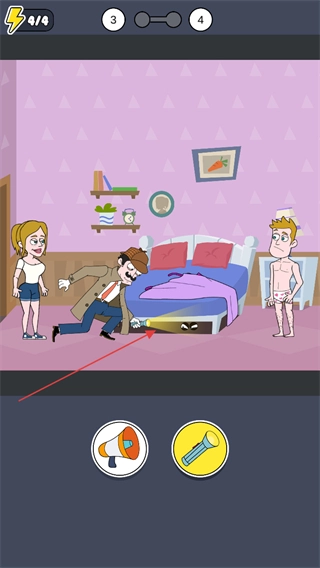 在卧室里,选取手电筒道具,朝着床底照射,看到了藏着的眼睛图案。