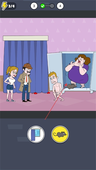 放出老鼠,让它钻进衣柜,把藏在里面的人物引出来,这样就能达成关卡目标了。