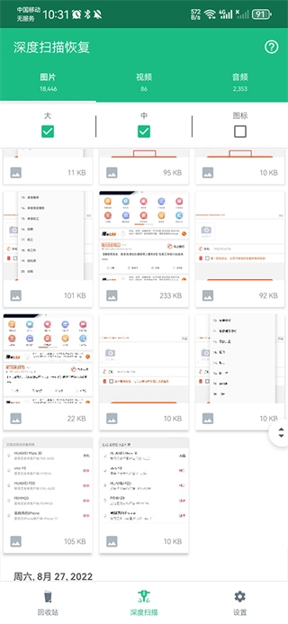 在本站完成安装后,点击打开进入,开启深度扫描界面,系统便会自动扫描过往已删除的图片、视频与音频文件。