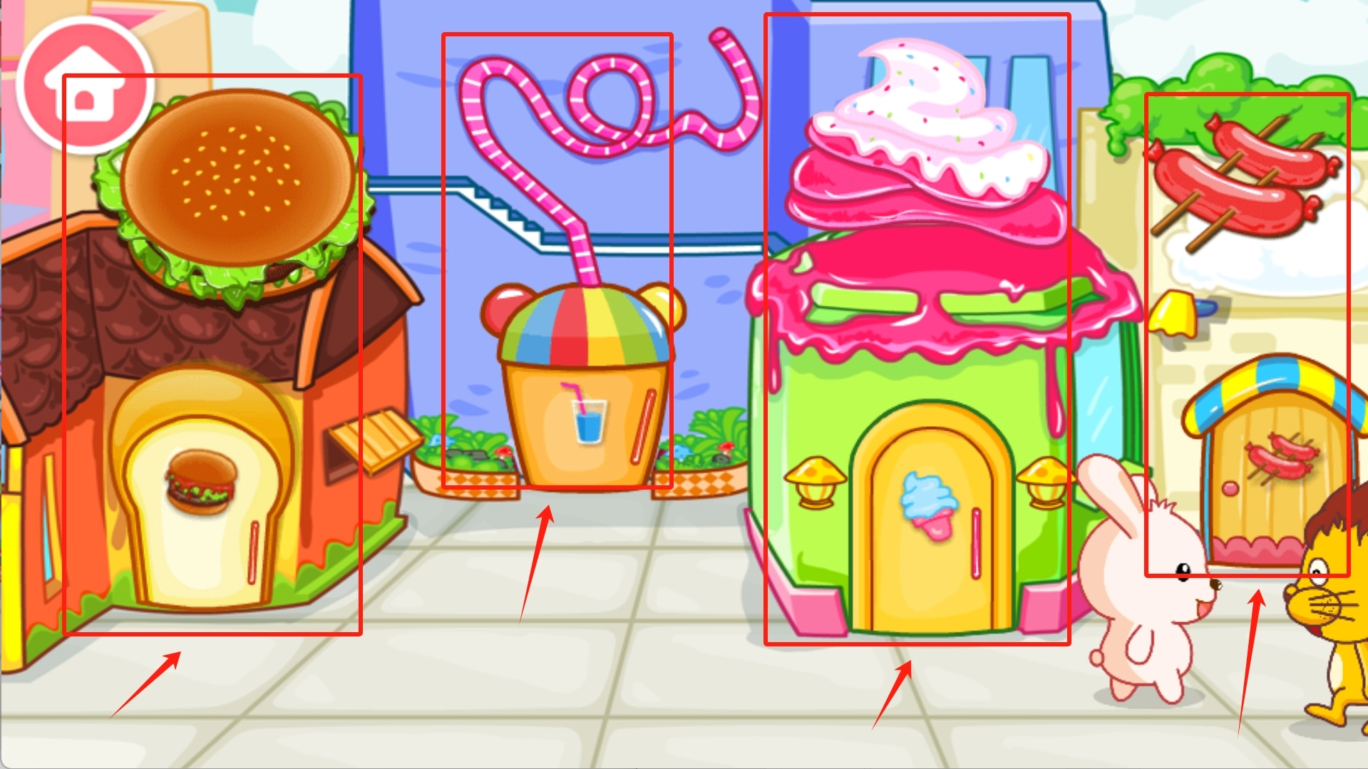 可以看到里面有四座小房子,想进入哪一座点击相应的位置就行。