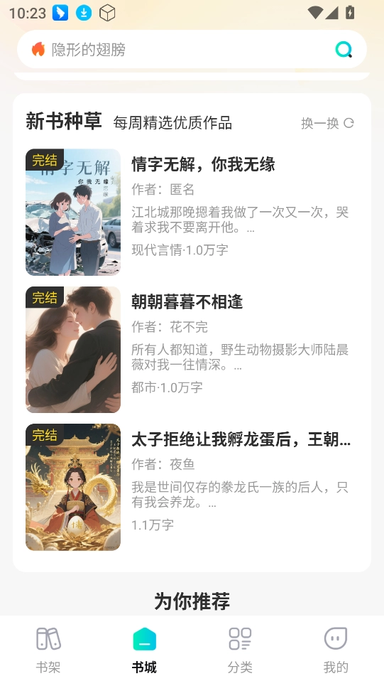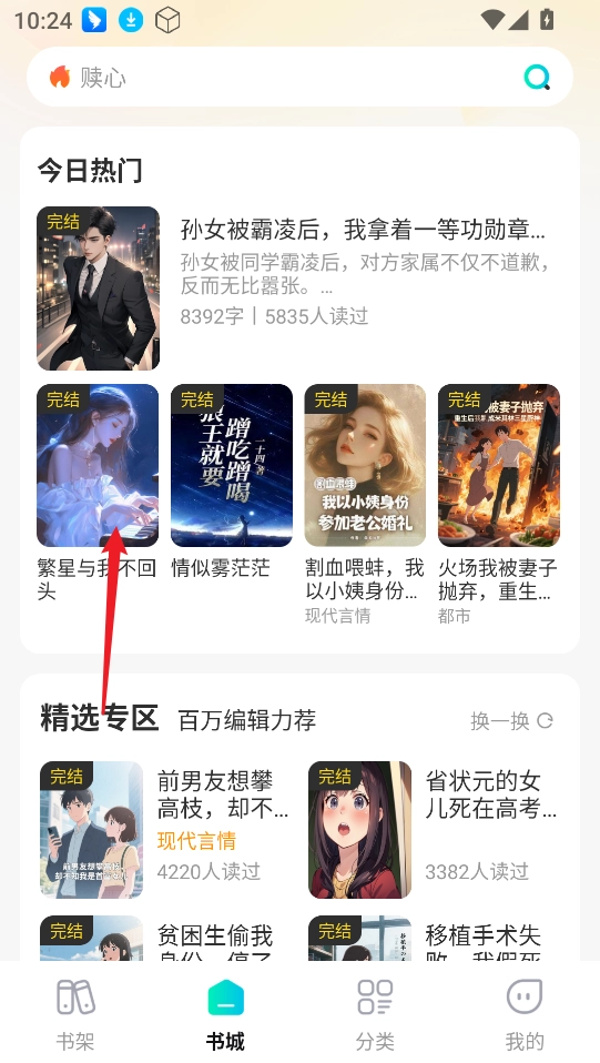 在书城页面里,你可以通过热门榜单、精选推荐或者新书速递这类栏目去浏览作品,也能够直接用搜索功能来查找书名或者作者。
