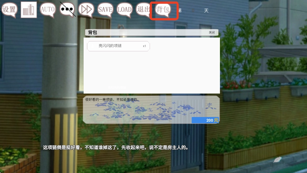 选择选项后,有一定概率获得物品,这些物品可以在上方的背包中查看。