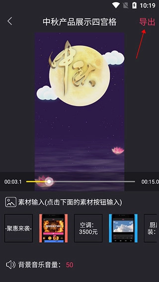 用户可在这个界面添加字幕与背景音乐,点击导出按钮后就能生成对应的视频。