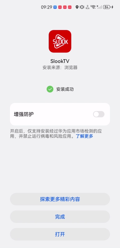 最后出现绿色对勾就“表示安装成功”,点击下方的打开按钮,就能体验精彩内容了。