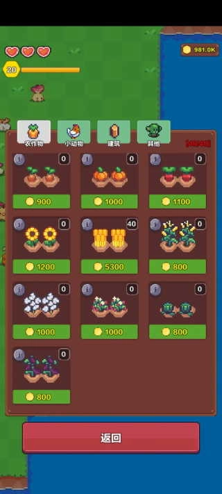 背包里的种子,前期钱不够可以种了,后面直接卖了。
