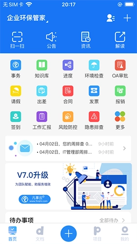 凡事云是一款专为企业定制的手机办公应用,助力企业优化管理、削减管理成本并提升管理效率。平台集成了知识库、项目进度跟踪、请假审批、考勤签到等丰富办公功能,能灵活适配各类企业的个性化需求;同时支持多部门协同分工,有效提升团队工作效率。此外,它借助云计算、物联网等前沿技术,构建起智能化的办公平台。