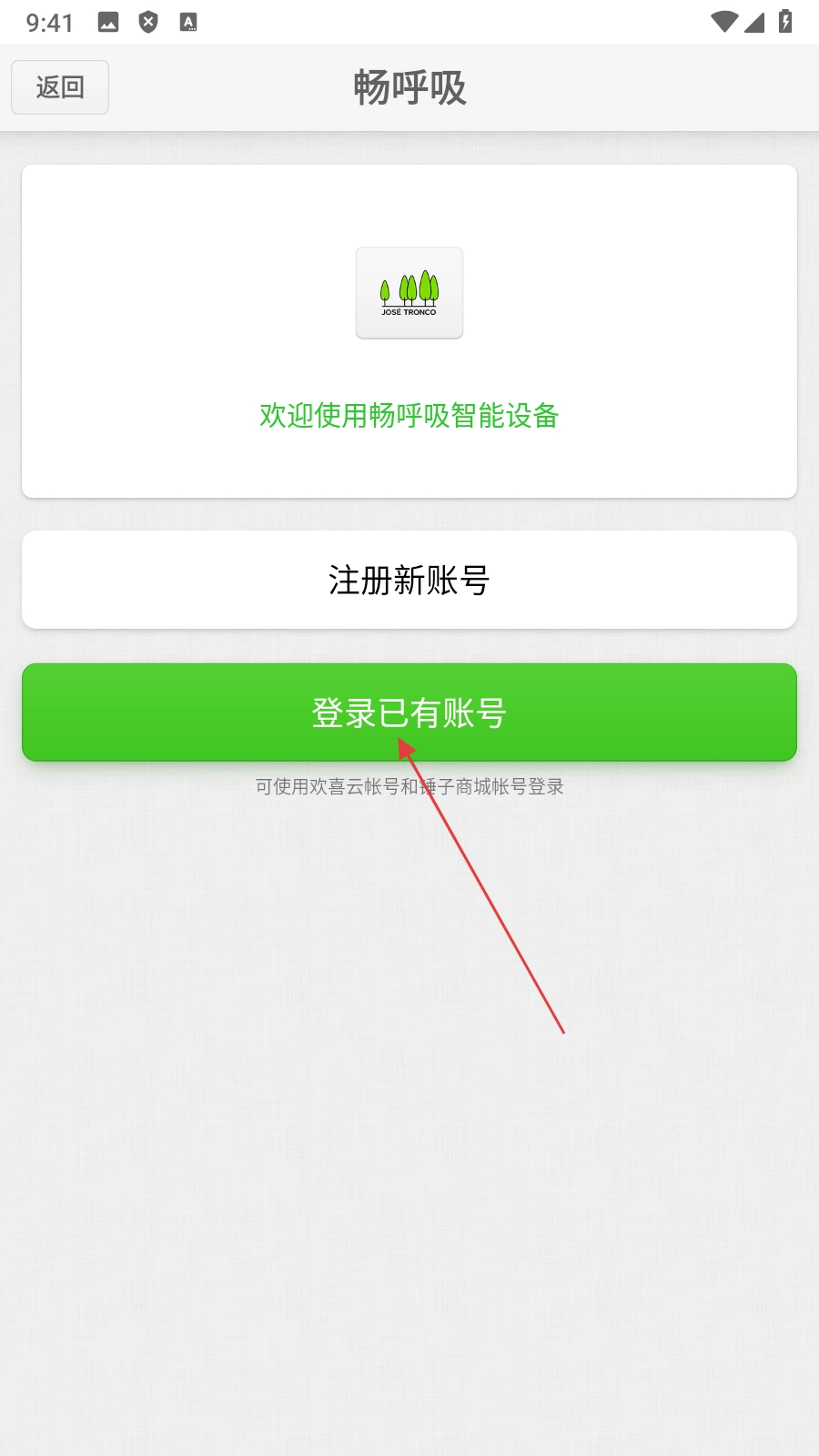 在账号登录注册页面,点击【登录已有账号】按钮,即可跳转至已有账号的登录页面。