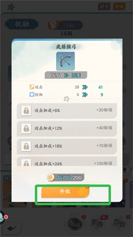 武将等级达到一定阶段后,可以解锁装备升级功能。