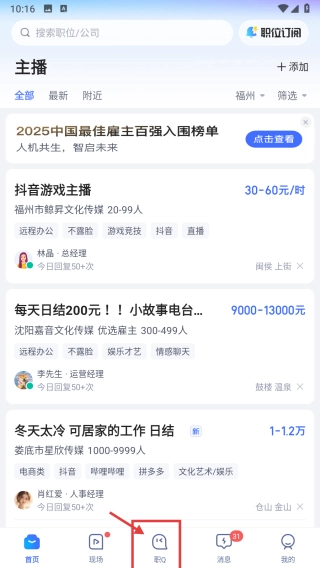 招聘板块分类清晰