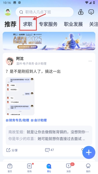 打开求职类,点击底部求职选项,进入求职页面。