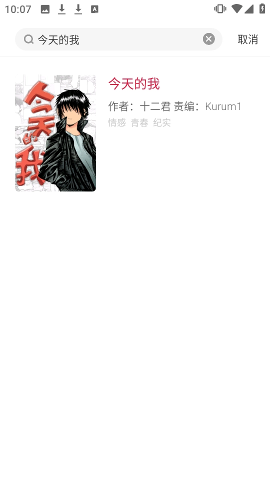 在搜索结果里,找到【今天的我】这部漫画的条目并点击,就能进入它的详情页面啦。