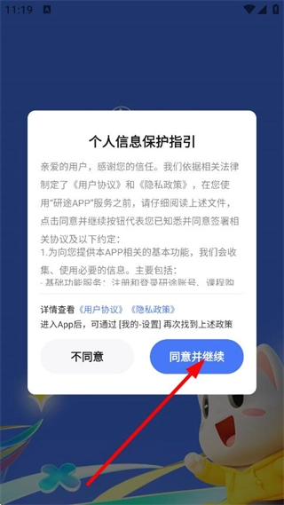 在个人信息保护指引的弹窗里,点击“同意并继续”按钮,就能进入登录页面了。