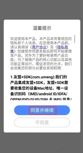 首次使用时,需要先点击同意用户协议的弹窗,完成这一步操作后,方可进入主界面开始使用相关功能。