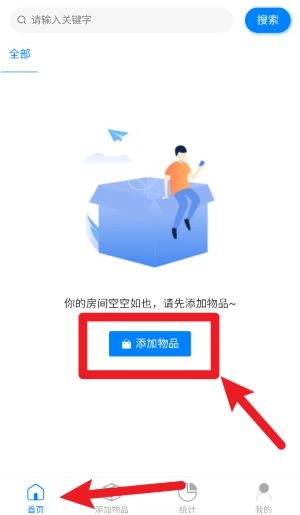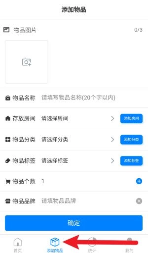 在首页界面点击添加物品按钮,即可开始录入需要管理的房间物品清单内容。