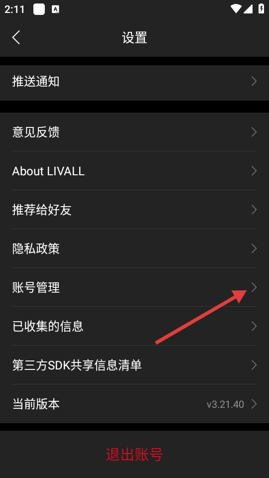 在设置页面中,点击【账号管理】选项。