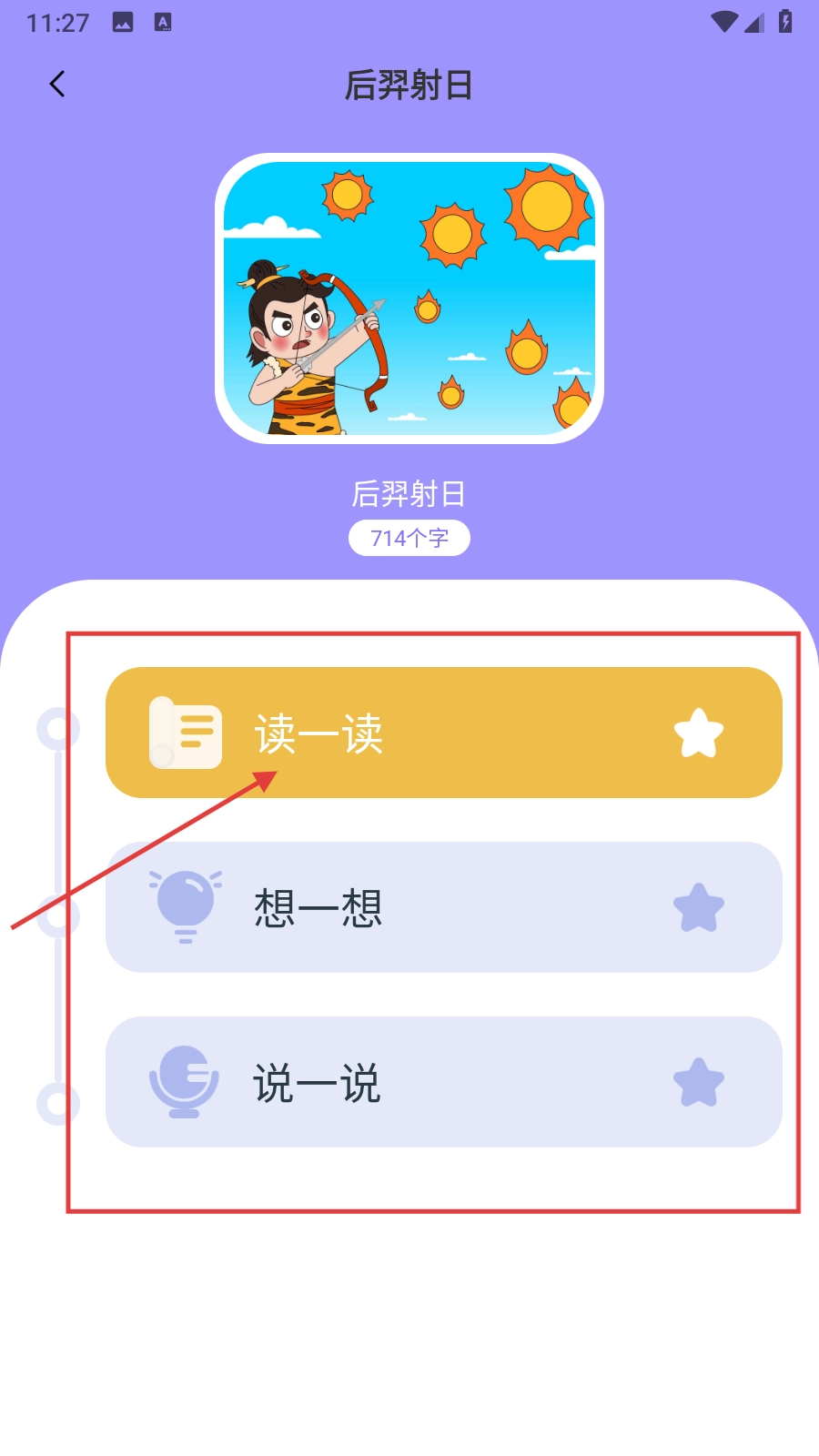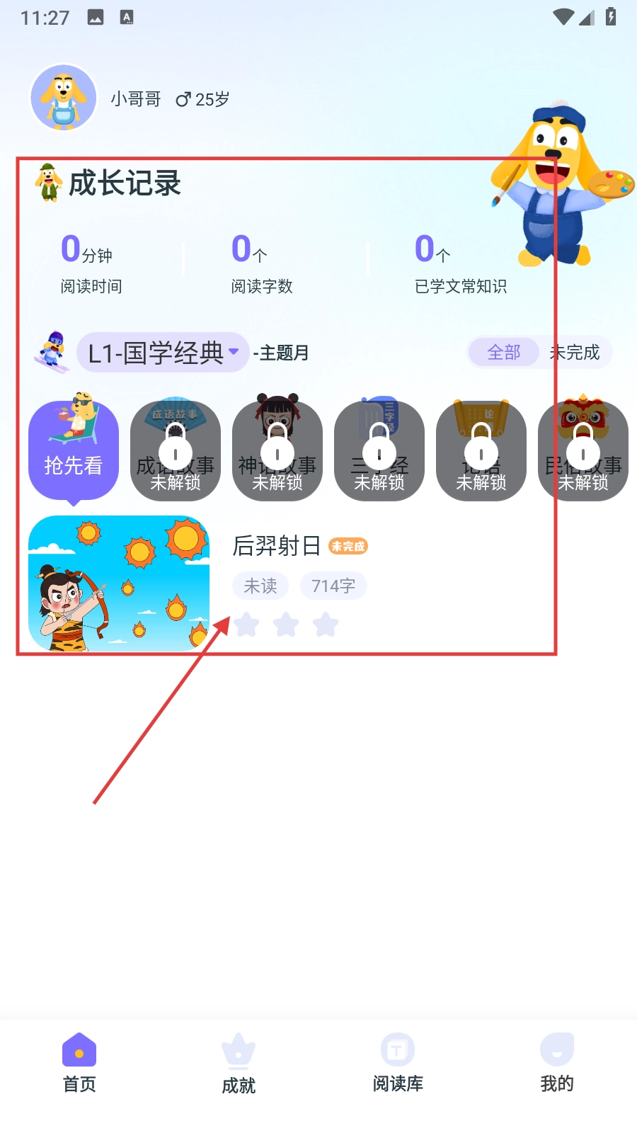 在个人页面的成长记录板块里,找到《后羿射日》这个故事,点击它就能进入故事的详情页面。
