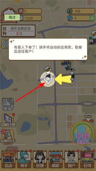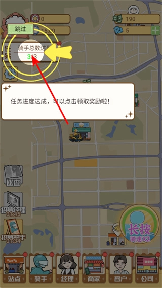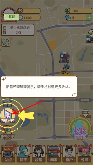 招募经理进行管理,点击招募经理选项,通过招募经理来管理骑手,提升骑手的收益创造能力,进而增加公司盈利。