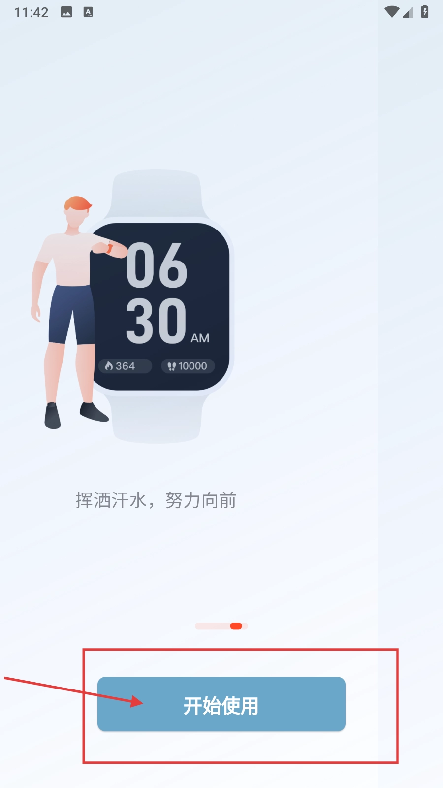 打开运动健康类应用,点击【开始使用】按钮,进入设置流程。