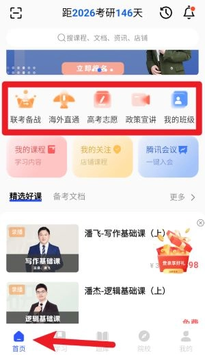 进入首页后,你可以点击联考备战、高考志愿等不同模块,快速跳转到所需内容。