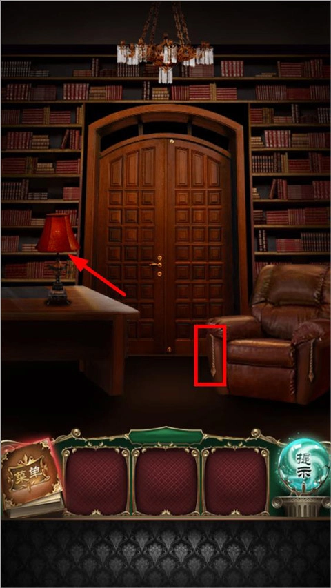 第三关时,我们从沙发上找到一根绳子,接着将绳子放置在左边的台灯位置。等场景变亮后,我们留意到左下角有个红色按钮,按下它就能进入第四关。