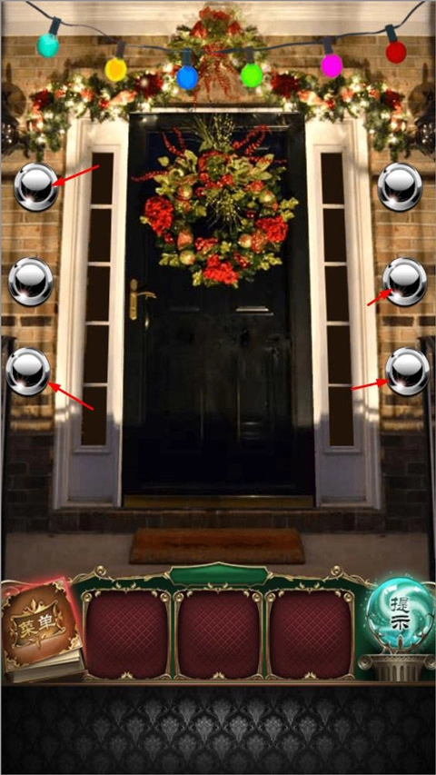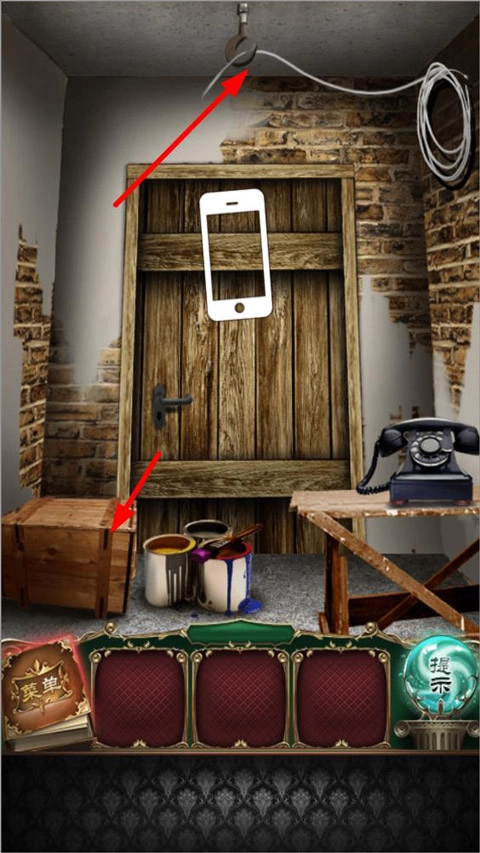 第一关是新手关卡,按照提示点击右下角发光的道具,把它放到门把手上就能过关,然后进入第二关。