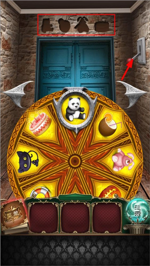第九关,我们要在中间的转盘上挑选门上方对应的图案,选对图案后拉动右侧的拉杆,等四个图案都选对了,门就会打开,接着进入第十关。
