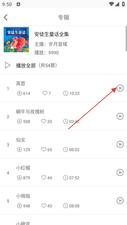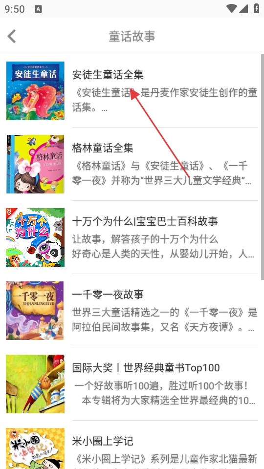 在童话故事的列表里,挑选《安徒生童话全集》,然后进入这个专辑的页面。