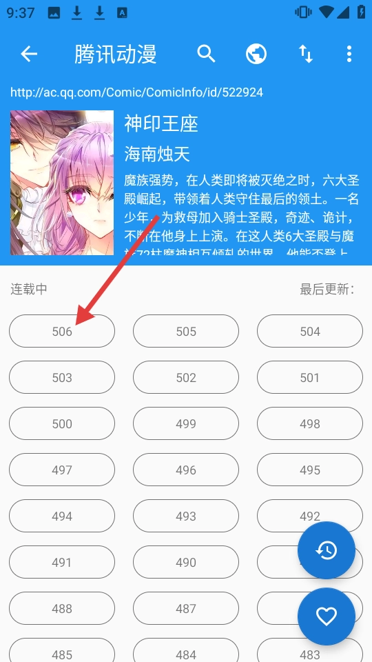 在漫画详情页,点击章节按钮(例如【506】),就能开始阅读对应的章节内容。
