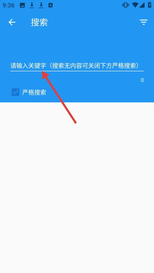 在搜索页面的【请输入关键字(搜索无内容可关闭下方严格搜索)】输入框里,填入你想要查找的漫画相关关键字。