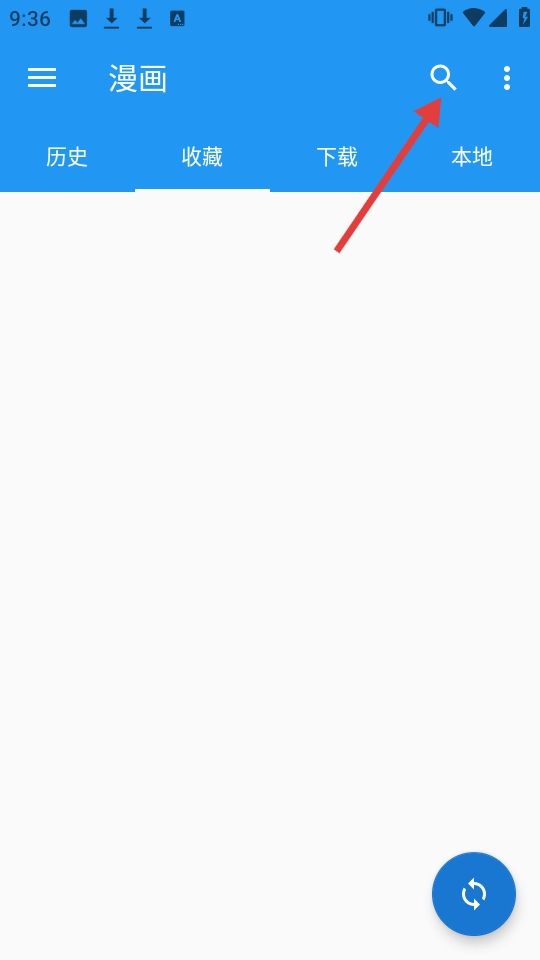 在Cimoc漫画界面,点击右上角的【搜索】图标,即可进入搜索页面。