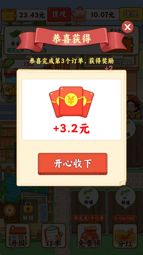 这是一款非常适合休闲放松的趣味经营游戏,简单的种植玩法对各个年龄段的玩家都很友好,上手特别轻松,而且完成订单还能获取奖励哦!
