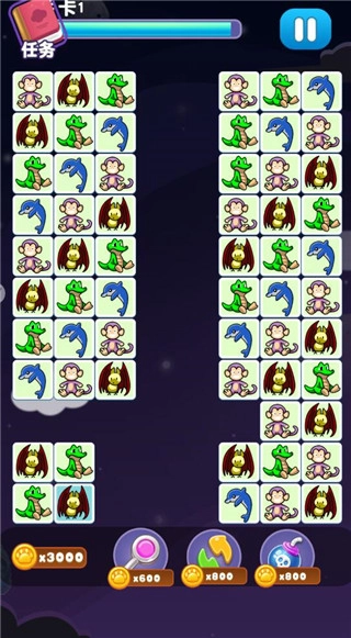 游戏里有提示、重排、炸弹这些实用道具。提示道具可以帮玩家快速定位能配对的图案,炸弹道具则能清除一定范围内的图案。