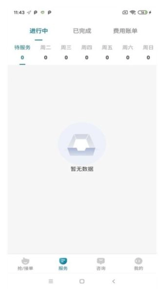 点击服务可以查看进行中的订单。