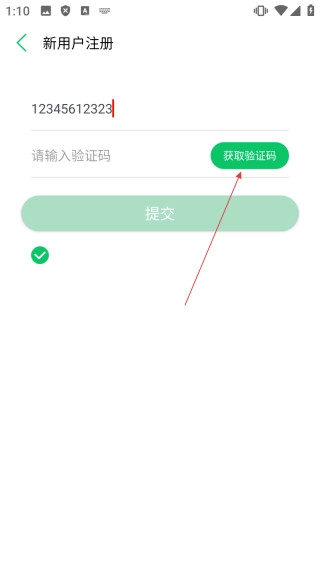 在新用户注册页面,点击【获取验证码】按钮,获取验证码后将其填写进去。