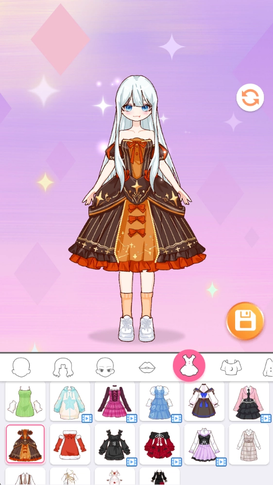 头部设计完成后,接下来我们就可以搭配各式各样漂亮的服装了,比如好看的连衣裙就很合适。