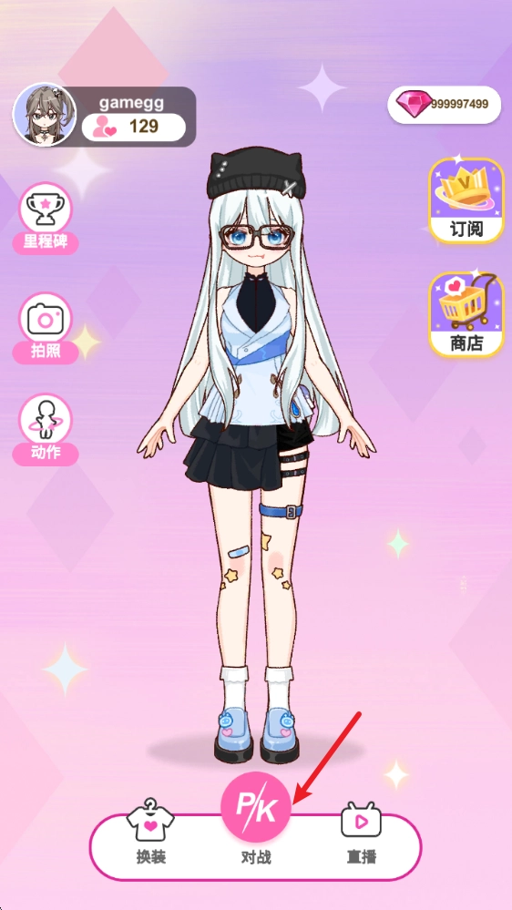 回到主界面就能看到精心打扮后的形象啦,而且还能去参加PK比赛哦。