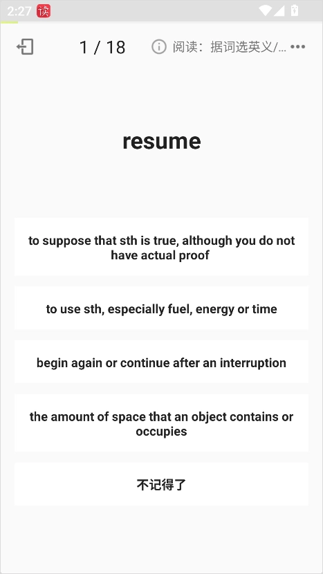 支持三种模式,分别是flashcards记忆卡、系统推荐题目和自由选题。