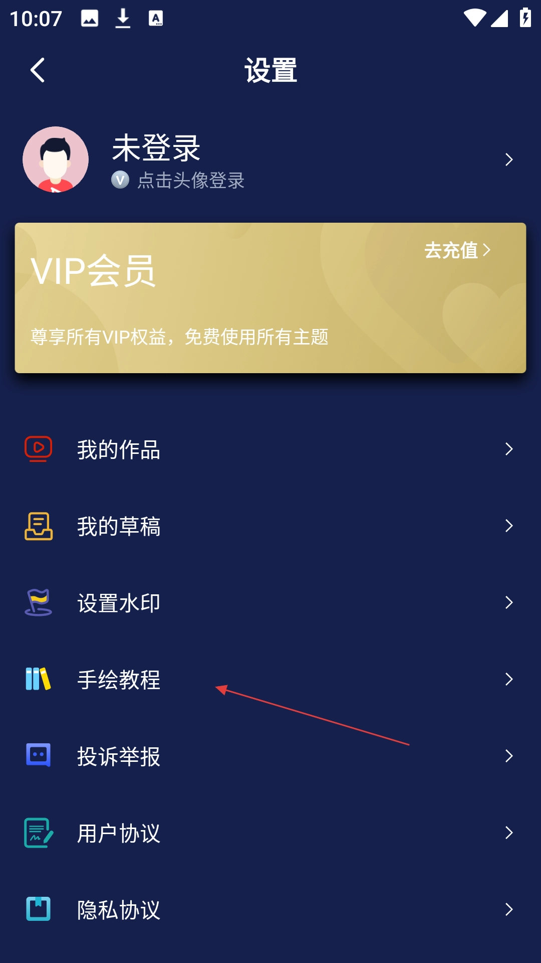 进入设置页点击【手绘教程】开启学习之旅。