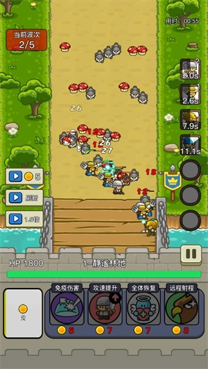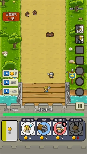 这是一款轻度塔防游戏,采用关卡制设计。战斗过程中金币会持续自动增长,每波怪物刷新时也会额外获得一部分金币。玩家需要用这些金币在界面下方进行肉鸽式的四选一升级操作——否则将无法召唤士兵参与战斗。游戏内金币资源的增长速度较慢且总量有限,因此十分考验玩家的资源统筹能力与策略选择眼光。战斗系统支持多倍速功能,但开启加速后,玩家的决策速度和操作手速也需相应提升,不然仍有可能面临失败。
