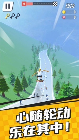 游戏采用闯关挑战的模式,每一关都设有数量不一的对手,而且道路的复杂程度也大大超出预期。在竞速对抗的过程中,玩家需要灵活地操控角色移动,同时也得留意收集道路上的金币、钻石等各类资源。