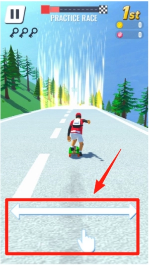 起跑之后,通过左右滑动屏幕的两侧来控制方向。