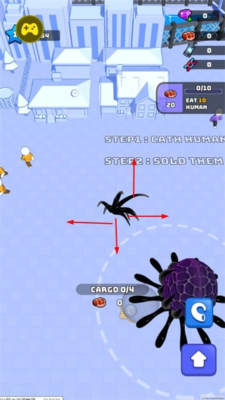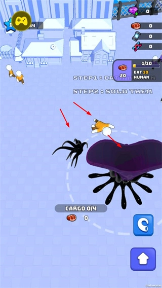 操控毒液在城市场景里移动,抓捕人类并把他们装进cargo,以此完成收集任务。