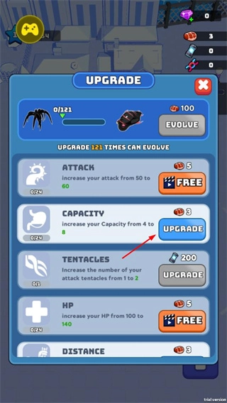 可以通过升级蜘蛛的各项属性,增强它的收集与战斗能力,并且能够让蜘蛛进化形态。
