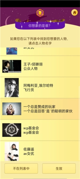 在心里选定一位真实存在或虚构出来的人物,接下来,灯神将向您提出问题,请您依据实际情况如实回答。