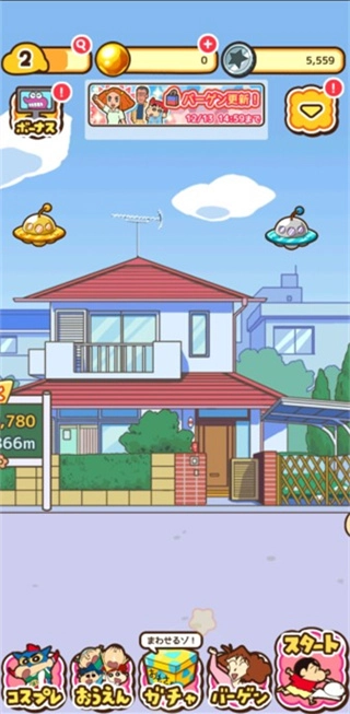 最后一张庭院里的飞碟,点击部分飞碟能得到不少金币,有的则需要观看广告。