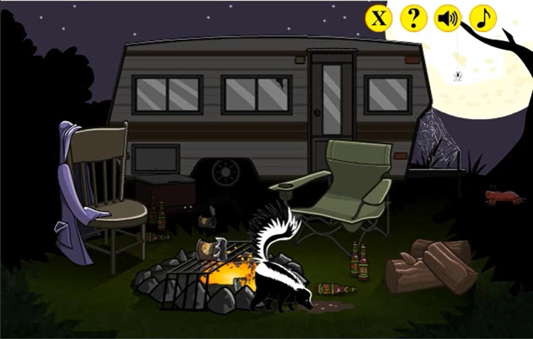 我们先点击报纸,接着点火坑;再点右下角的柴火,然后点火坑。之后点击左边的罐头盒,把它放在烤架上;再点击穿紫色衣服人物口袋里的火机,接着点火坑。等臭鼬去吃烤架上的罐头时,点击臭鼬吃剩下的罐头和蜘蛛网;等蜘蛛爬下来后,再点击蜘蛛网。随后点击臭鼬,等臭鼬被包裹住,最后再点击一次臭鼬。最后点击有破洞的车窗口,进入箱车。(直接点击臭鼬会触发一个好结局)