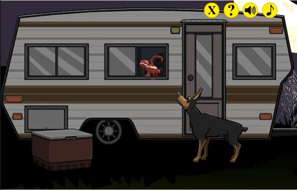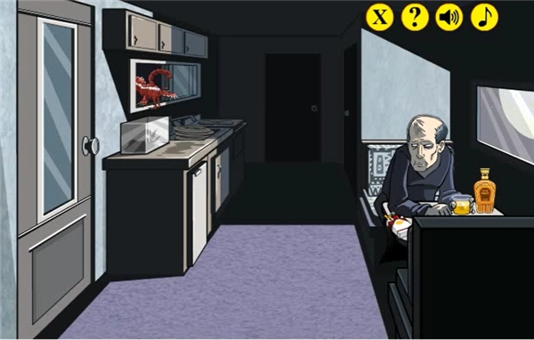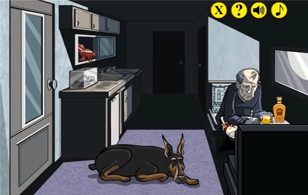 第一部分我们先点击蝎子,接着点击狗身后的柜子,再点击柜子里的香肠,等狗被赶出去后,点击虫子后面的窗子,从箱车离开。