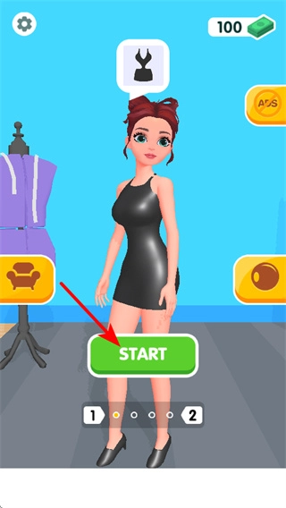 在游戏里,点击START按钮就能开启服装设计挑战,这是进入游戏创作环节的关键步骤,点击之后就可以着手为模特设计服装了。